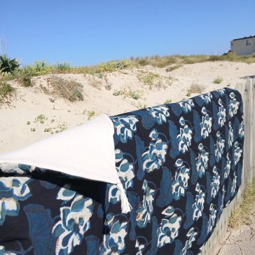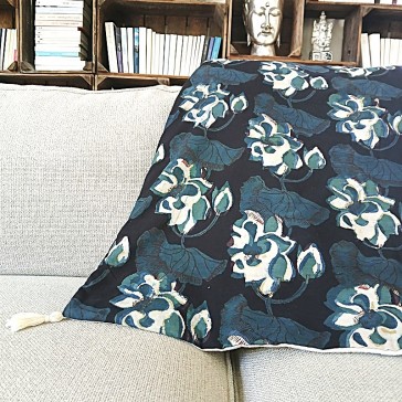 Attention Mesdames ! Si vous êtes fans de couture, cet article va vous intéresser. Maison Pouic vous propose une chose rare : de beaux tissus en voile de coton imprimé selon la technique du block print et qu'elle a ramenés d'Inde pour vous. Et ce qui est encore plus rare, c'est le format de ces pièces : vous choisissez votre longueur, de quoi vous permettre de confectionner de petites pièces sans acheter de grandes surfaces de tissu. Les motifs sont réalisés par impression au bloc de bois, technique asiatique antique utilisée également pour des livres ou pour les estampes japonaises. Ceux-ci représentent de grandes fleurs de lotus vert céladon et écrues sur un fond noir. La grande classe ! Confectionné de manière artisanale, ce tissu peut laisser apparaître des irrégularités dans l'impression des motifs. C'est normal.